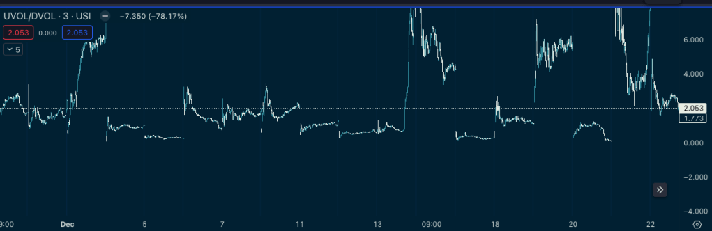 You can inverse the VOLD ratio calculation (DVOL/UVOL) to get a better view for exchange-wide sell-side pressure.