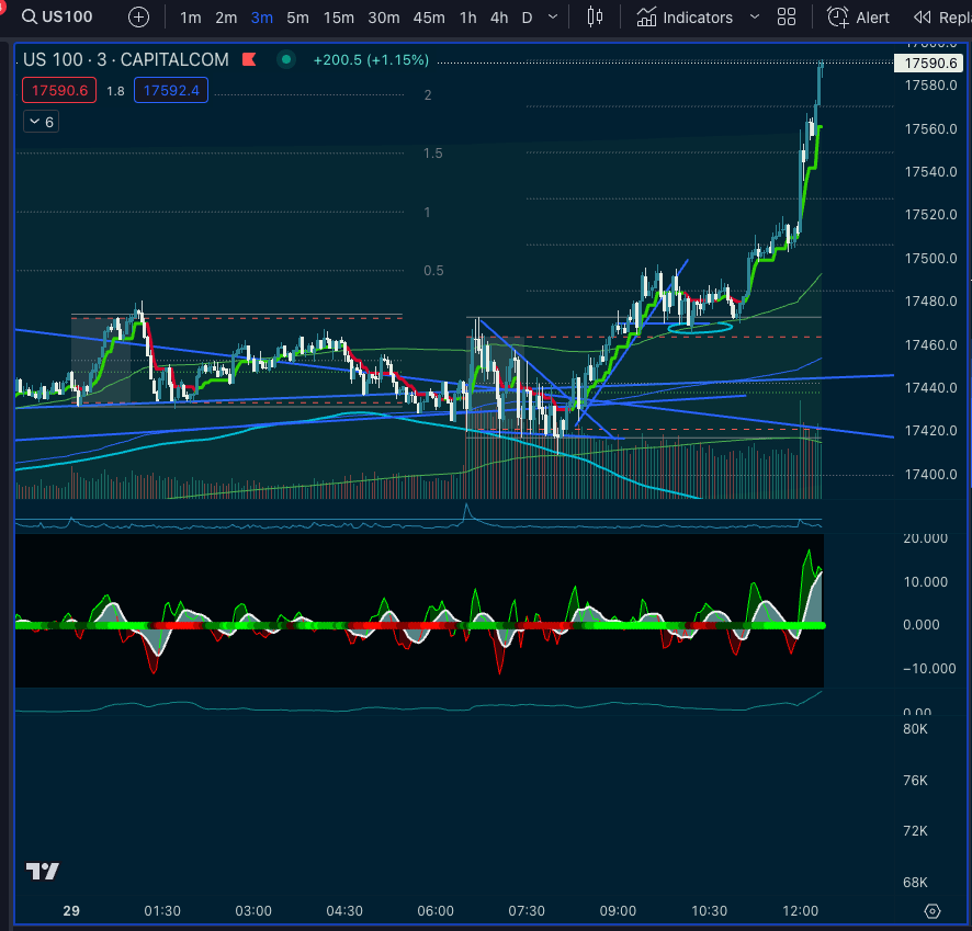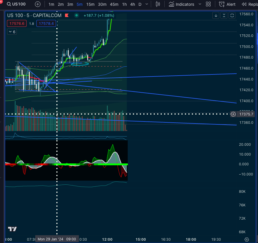 I had a fairly flat day covering risk, trying to find positions to hold without drawdown, but managed to catch the end of the day. I took profit pretty aggressively just to be safe as the move was violent. Why would I long at the end of a run? Surely that’s a fool’s errand! You just have to see the internals and know the type of day. VOLD shifting buy side is a signal to follow the trend! That’s institutional capital going long. 18k Nasdaq is likely.