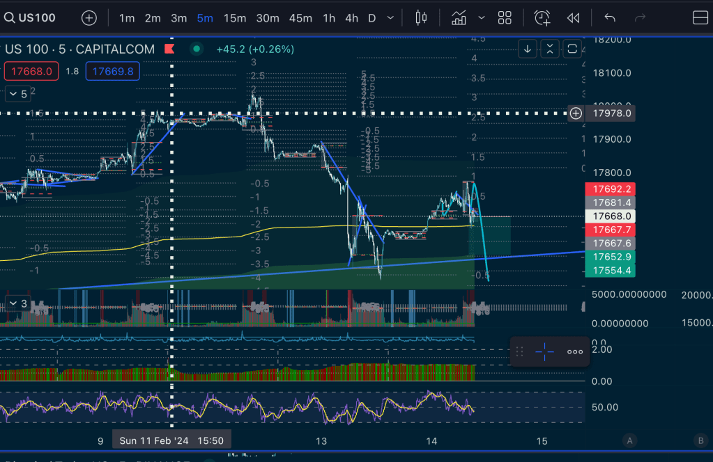 Update: Crypto has recovered, but equity is down after CPI. Thurs Feb 15th is PPI and could rattle markets some more. NASDAQ has fallen from ~17900 to ~17550 this week. Will see how PPI goes – if the market doesn’t resume the rally, I could see some more extended selling.