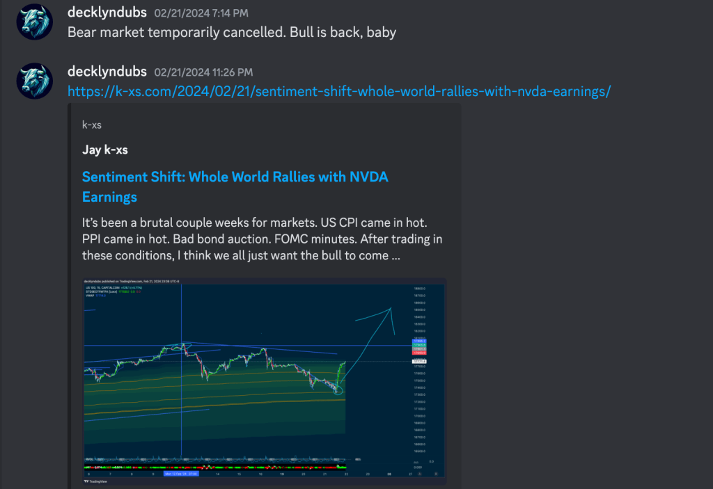 You’ll see them there on the chart. Might not have posted everything here, but you can see I did on the discord for both shift in the market, down from high, and up from NVDA earnings to ATH on S&P and nas.