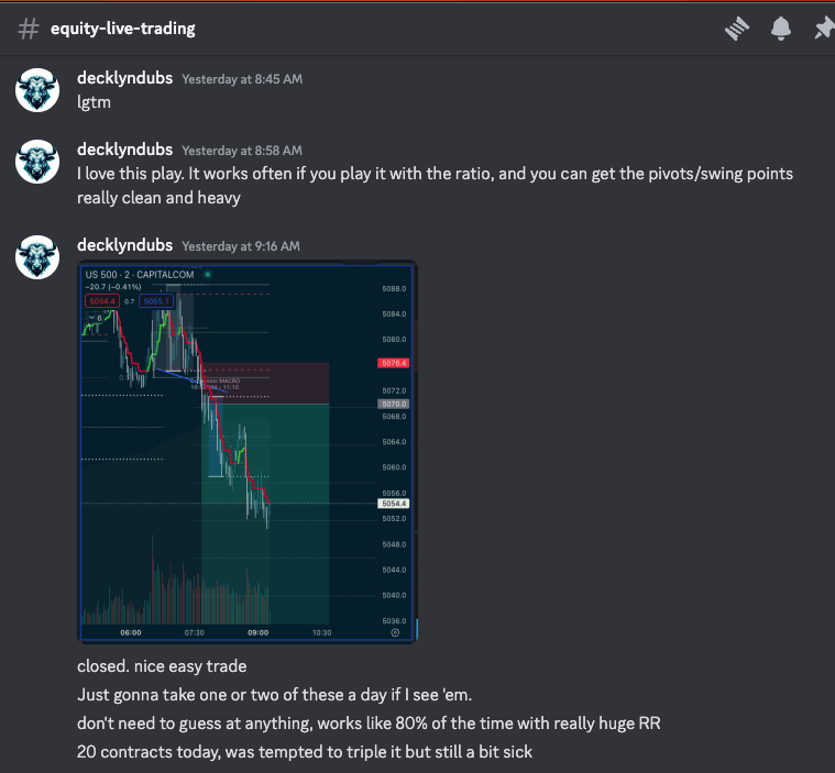 Once I saw the price stall, I took 10 contracts off to ensure the trade was paid for. When I saw consolidation I decided to close the position fully. I was feeling sick so decided not to put more risk on, but this was under-weight. I could have sized this at least 3x larger, shooting towards 1000% account size or even more would have been fine. These plays have virtually no drawdown so they can be sized into rapidly with barely any risk to account.