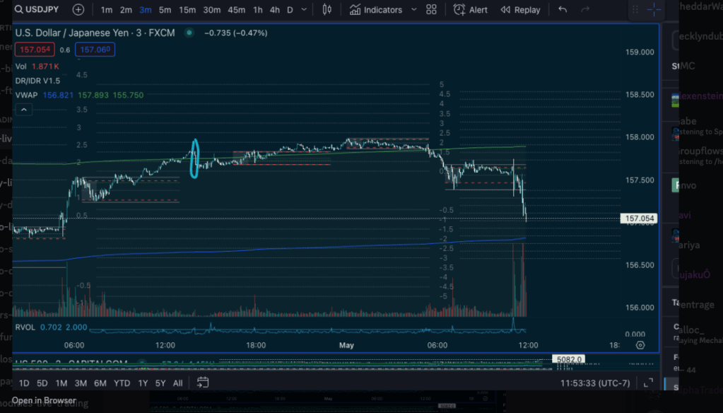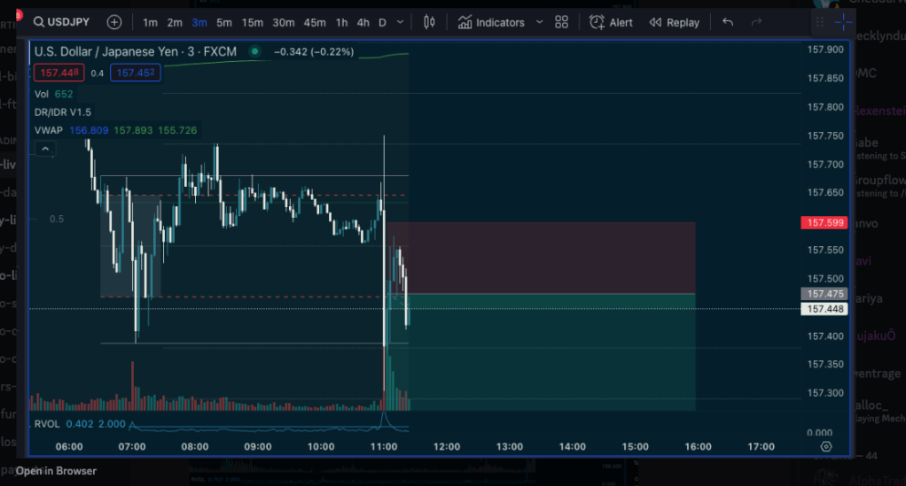 USDJPY above was a nice entry if late. Did it move? Yes! I took half here. Rest ran to entry, but then the pair dropped to 155!!! Ah well.