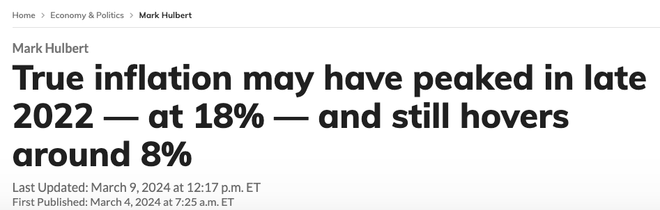 The CPI data is way off of the reality of inflation I believe, and we know that already it’s not good, it’s been modified through history. That’s not okay because minimum wage is tied to that, so the minimum wage worker lost a lot of ground there. Inflation is way worse than people realize I hypothesize. I mean, we feel it, but c’mon that was not 8% y/y peak. I looked today to see if I could find someone who took the time do do an analysis and I did! Inflation is likely closer to 8% a year today, not 3%!! So why are the central banks cutting rates? Minimum wage moves with CPI. So we’re slowly making the middle class poor. Brutal. If the original CPI calculations were used, it seems that CPI would be higher based on a look around the shelves and a few different markets. Maybe 18% at peak in 2022, and is still floating around 8% a year, year on year, today, per data highlighted by Marketwatch.