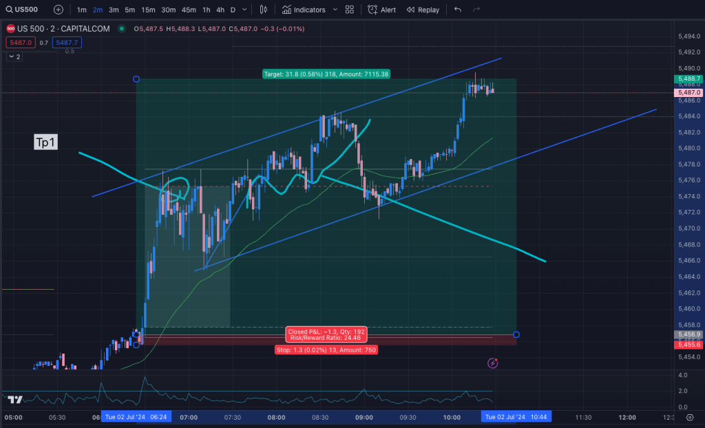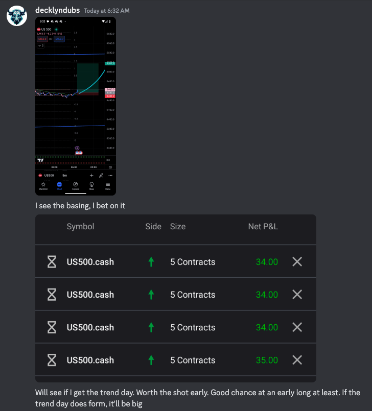 I woke up, and just started hitting the buy button into the open bell, getting 20 contracts long on S&P and planning to close the trade immediately if it went against me.