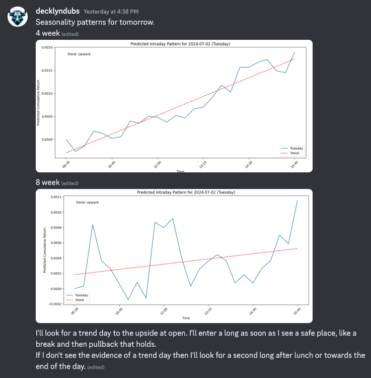 I generated the models for different look-backs and came up with these two models to use to anticipate entries. You’ll see I jotted down a trading plan in the discord.