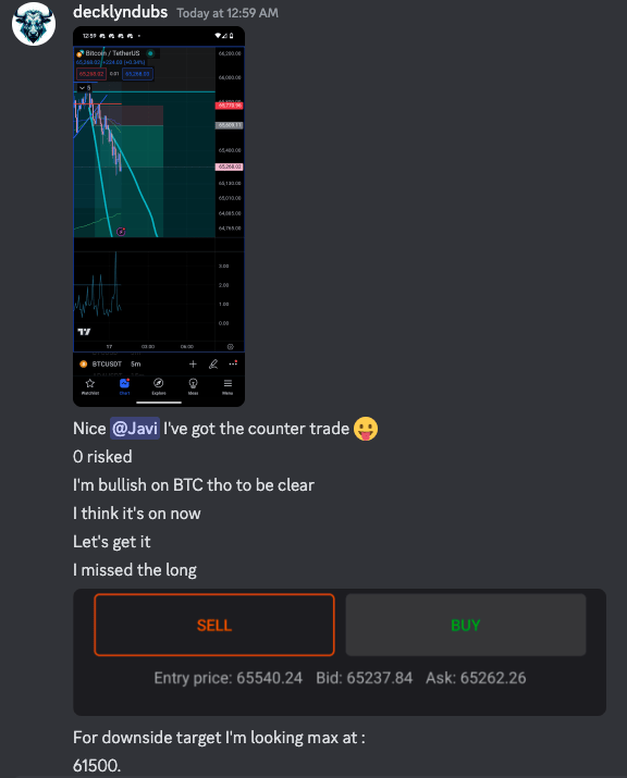You’ll notice that I had a plan for either up or down from there, and assumed it would sell off of the fib 66k, so I started to watch for an entry after drawing this up.