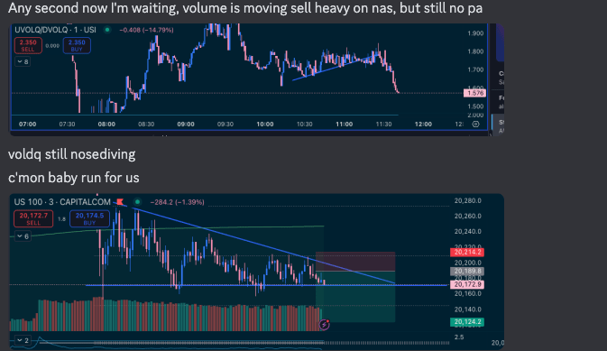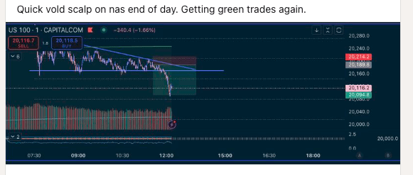 Second trade was a VOLD scalp on descending wedge for NAS/US100.