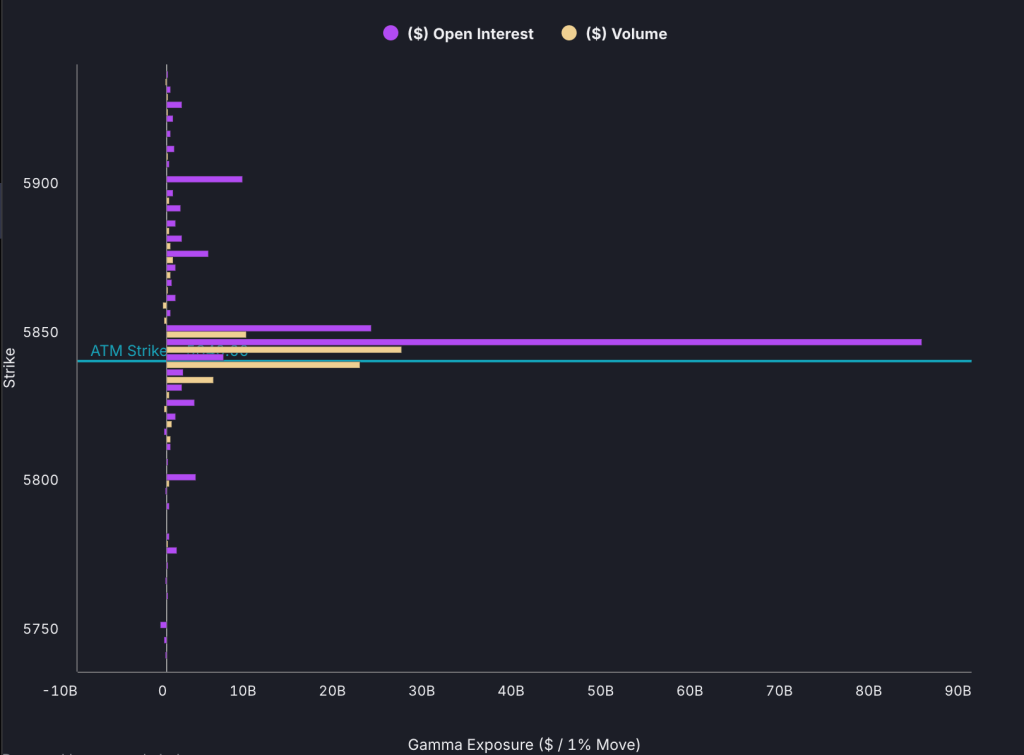 The other major factor in the market maker behaviours on the indices are gamma levels that determine how market makers are hedging for delta neutrality. Stated simply, whenever the price of the index moves, a market maker trying to mitigate their risk exposure have to hedge either against the move (sell every $1 increase in price for example) or hedge with the price movement in a negative gamma environment (buy every $1 increase in price.) This means that in the most common scenario of a positive gamma trading environment, that market makers have to push against the upward price movement to eliminate their risk exposure, which makes the markets move against the bets on the move in the markets. Consider the “stairs up” adage.