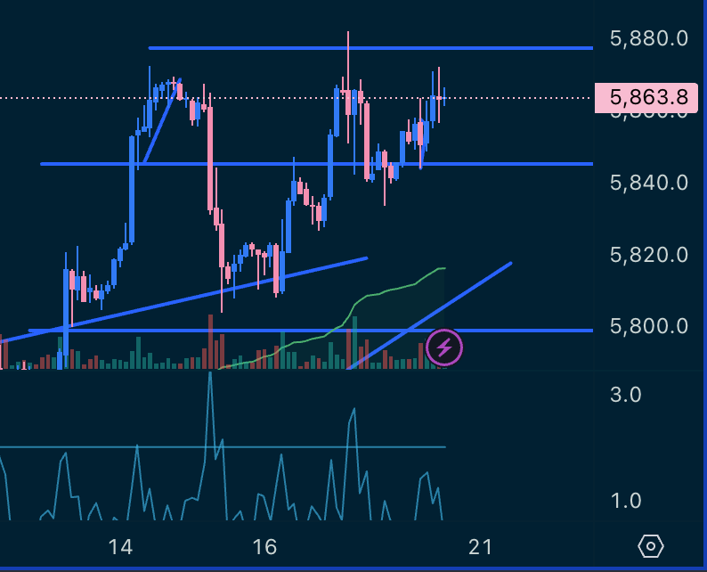 You’ll see the levels of interest: 5800, 5845, and 5880 make up where the bids and asks are caught and it holds the price towards the major interest level.