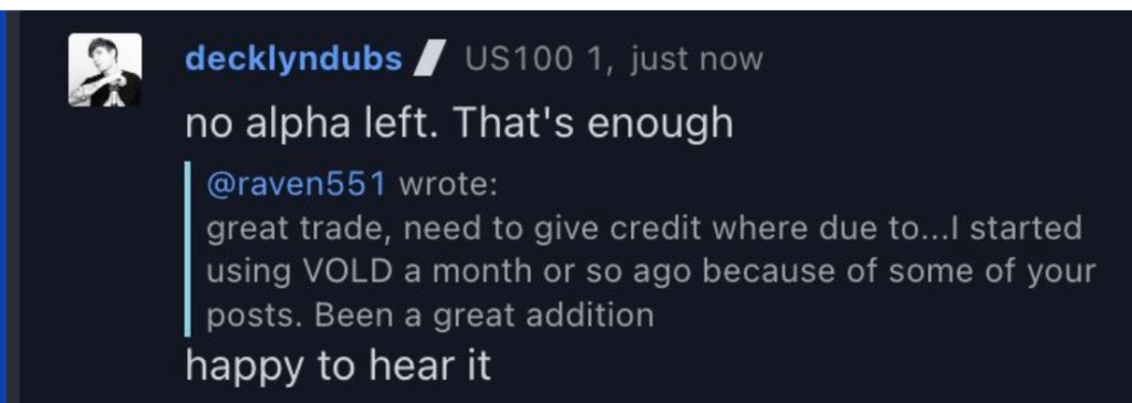 I’m pretty noisy when I trade – I write all of my decision making down along the way, wins and losses. You often don’t get to see the whole process that a prop trader takes in decision making so I really wanted to do this as I skilled up and make everything I do available for free to the public (k-xs.com and the discord.)