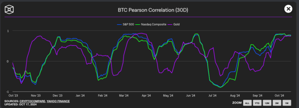 I’m also putting a lot more charts up – there is strong correlation on the Pearson 30d Correlation between equity, crypto and gold, so you can spot the real moves more easily by watching all of them together, and it becomes a lot more obvious where to exit as all of the markets will start to falter together.