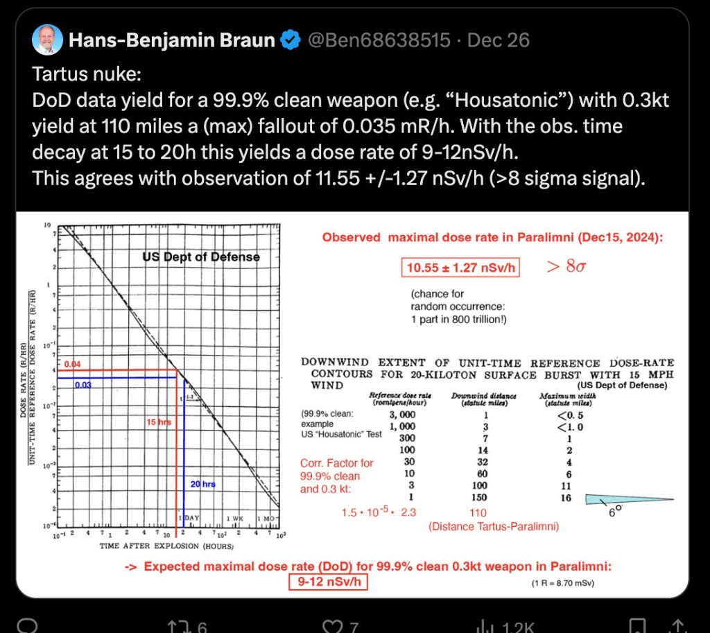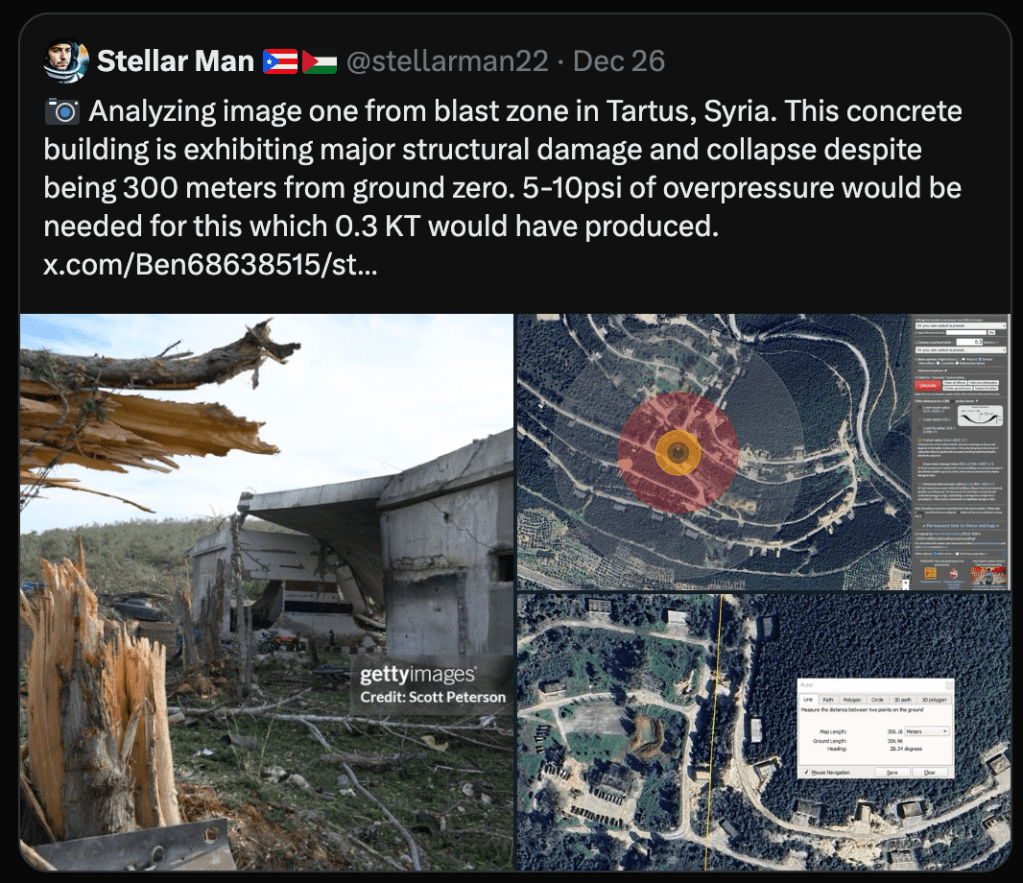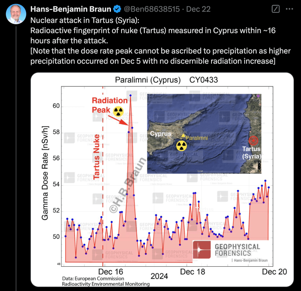 I spent days and days and days trying to understand if nuclear weapons are being used and I found multiple pieces of evidence. Some of the evidence surrounding Tartus I see is widely disputed but you’ll see here that there is misunderstanding of eg how much radiation would be emitted. I found a PhD physicist that has analyzed all of the information around the Syrian site and has concluded that the weapon was nuclear. I have other supporting evidence of nuclear weapon use I’ll cover after looking at the depot bombing in Tartus.