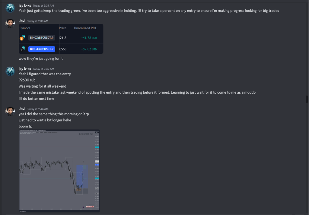 Even though I didn’t take the trade because I was busy, I was still executing. Still going through the motions. Living life, and attacking the markets. I had only hopped on XRP because Javi told me he was shorting it and I thought it’d go higher first.